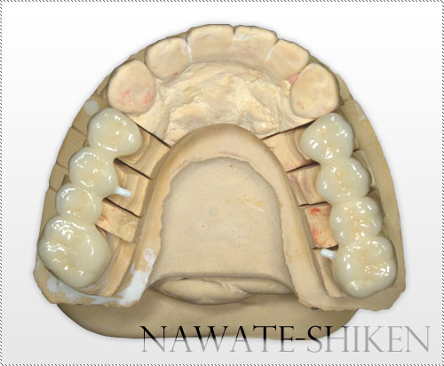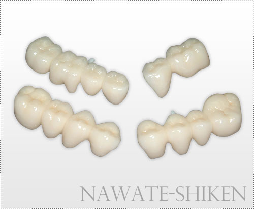 ジルコニアとは、酸化ジルコニウムを安定化させたセラミックで、色が歯に似ているので自然に見え、割れにくく強度性が高い。 金属を一切使用しないため、金属が溶け出すことによる歯ぐきの変色、金属アレルギーなどの心配が無く、奥歯やブリッジに使用することも可能です。