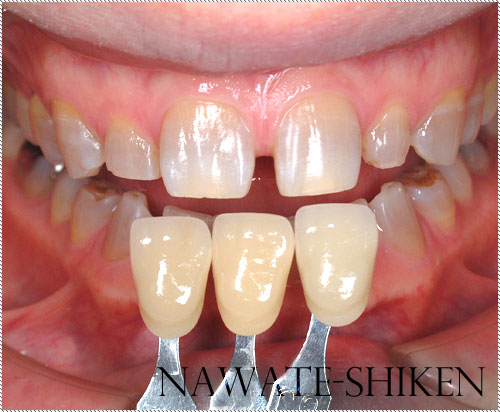歯の表面を少し削ってそこに薄いセラミックを貼り付け、歯の色や形、隙間等改善する治療です。 歯を半永久的に白くしたい場合や、歯の形を変えたい場合などに用いられます。